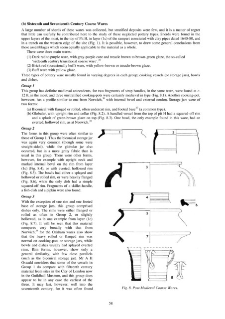 seventeenth century, for it was often found Fig. 8. Post-Medieval Coarse Wares.